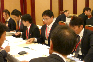 6つのグループにわかれ、「青年部会活動のさらなる充実と部会員増強」をメインテーマに各単位会の行っている租税教室のやり方や部会員増強の成功例などを討議しました。