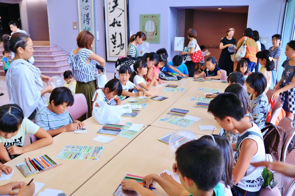 ショー終了後には会場ロビーにその場で絵はがきを描けるコーナーを設置し、たくさんの小学生に『税に関する絵はがきコンクール』へご応募いただきました。