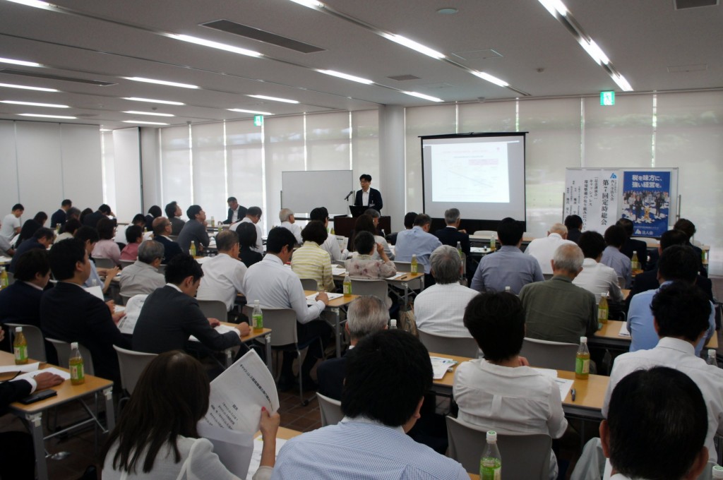 西大寺法人会(岡山県)は、6月19日(水)体験学習施設百花プラザにて、第7回定時総会を開催した。例年、総会終了後にその時々の話題に合わせ記念講演会を開催しており、今回はQRコードなどの登場で注目されている“キャッシュレス”について、地元金融機関の担当者を講師に迎え、会員のほか地域より100名が参加し開催した。