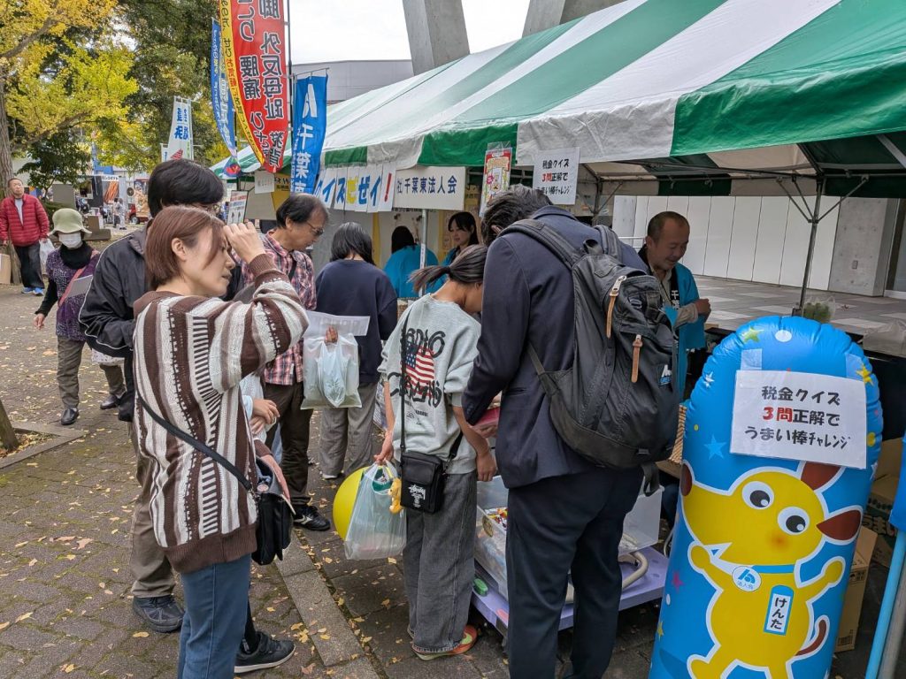11月2日(日)、第33回若葉区民まつりが東京情報大学を会場に開催されました。千葉東法人会も、地域貢献活動の一環として、「税金クイズ」や「現金1億円と一緒に写真を撮るコーナー」など、法人会ならではの企画をもってイベントブースを出展し、子供から大人までたくさんの来場者で終日賑わいました。 当日は、千葉東税務署兎澤署長をはじめ幹部の皆様も来場された他、イベントブースのお手伝いとして、時松千城支部長ご夫妻がご参加くださいました。ご協力大変ありがとうございました! (令和7年11月5日 掲載)