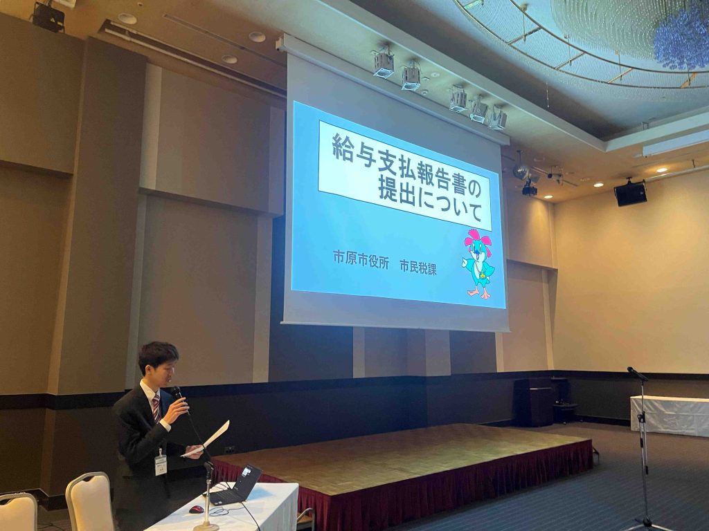 (一社)千葉南法人会では、令和7年11月4日(火)に五井グランドホテルにおいて、千葉南税務署・市原市役所ご協力の下、年末調整説明会を50名の参加により開催しました。説明会では、令和7年分の年末調整において税制改正された所得税の「基礎控除」や「給与所得控除」の見直し、新たに創設された「特定親族特別控除」等多くの源泉徴収義務者に関係する改正事項を中心に千葉南税務署並びに市原市役所各担当職員より説明頂きました (令和7年11月5日 掲載)