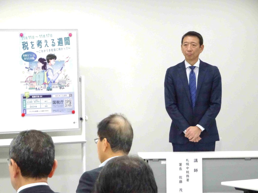 公益社団法人札幌中法人会(高橋洋康会長)は、11月5日に税を考える週間行事の一環として、札幌中税務署佐藤茂樹署長の講演会を実施した。