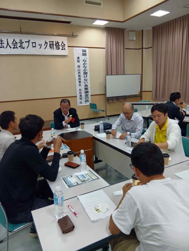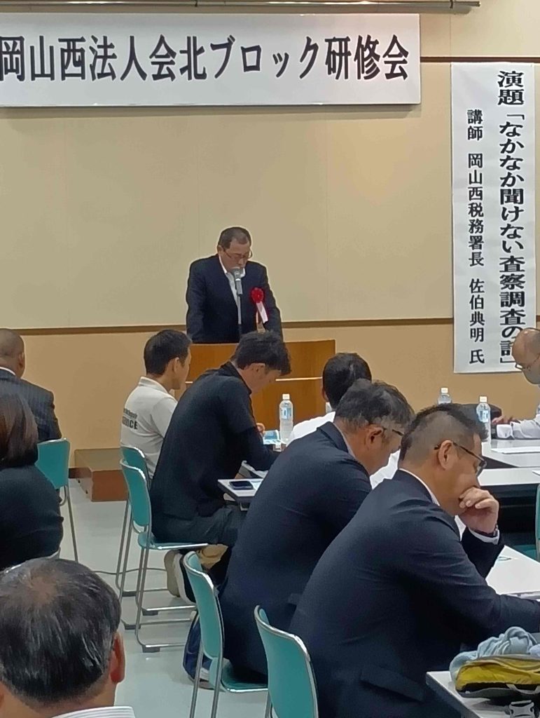 令和7年9月30日岡山北商工会御津支所で、岡山西法人会北ブロック研修会を開催しました。佐伯典明岡山西税務署長を講師に「なかなか聞けない査察調査の話」と題してご講演していただきました。講演終了後、署長ほか岡山西税務署の方々を囲んでの茶話会では、普段聞けないような質問もさせていただくなど、和やかに歓談させていただきました。