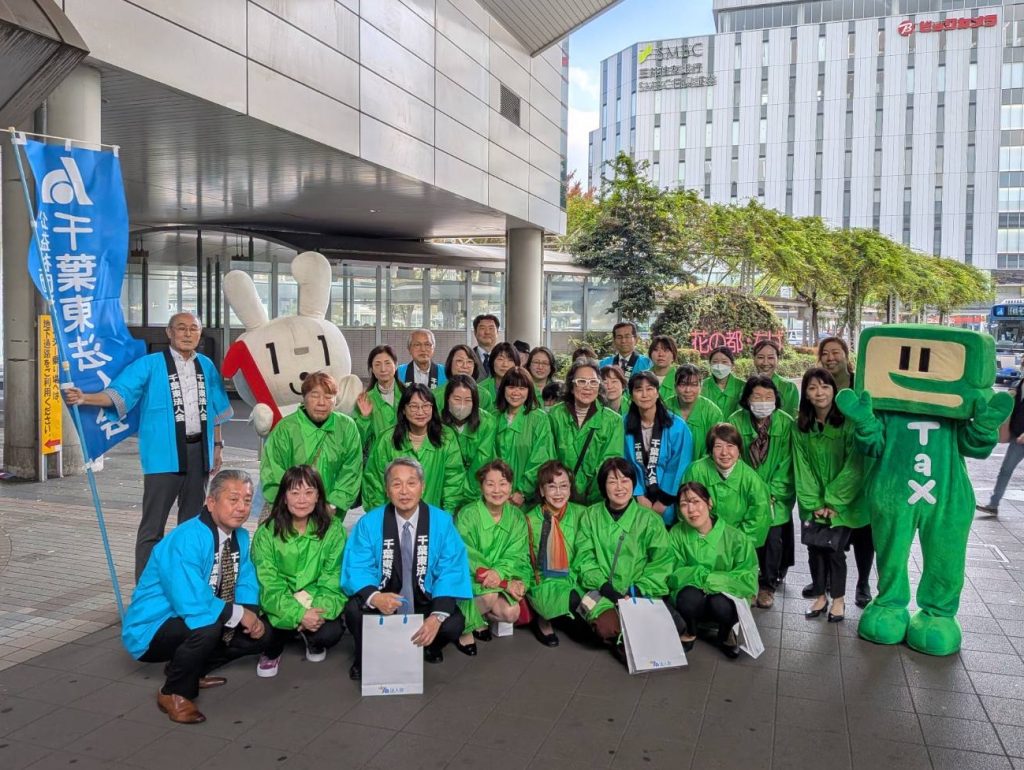 11月14日(金)、国税庁による「税を考える週間」にあわせ、県都の玄関口JR千葉駅前で千葉東税務署と税務協力6団体からの参加者総勢70名が、税についての理解と意識啓発を目的とした街頭キャンペーンを行いました。 千葉東法人会では本部役員や女性部会員が、行き交う人々に独自に製作したe-Tax利用促進の頒布品(ウエットティッシュ)や税の啓発用小冊子を配布して税への理解を呼びかけました。 (令和7年11月17日 掲載)