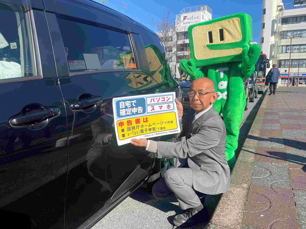 一般社団法人千葉南法人会(会長寄主 俊雄)と一般社団法人千葉南青色申告会(会長岡田博文)は、今年で10年目になる電子申告(e-Tax)による自宅からの確定申告を呼びかけるPR用マグネットシートをタクシー会社に交付する「タクシー出発式」を令和8年1月8日、13日の両日開催した。