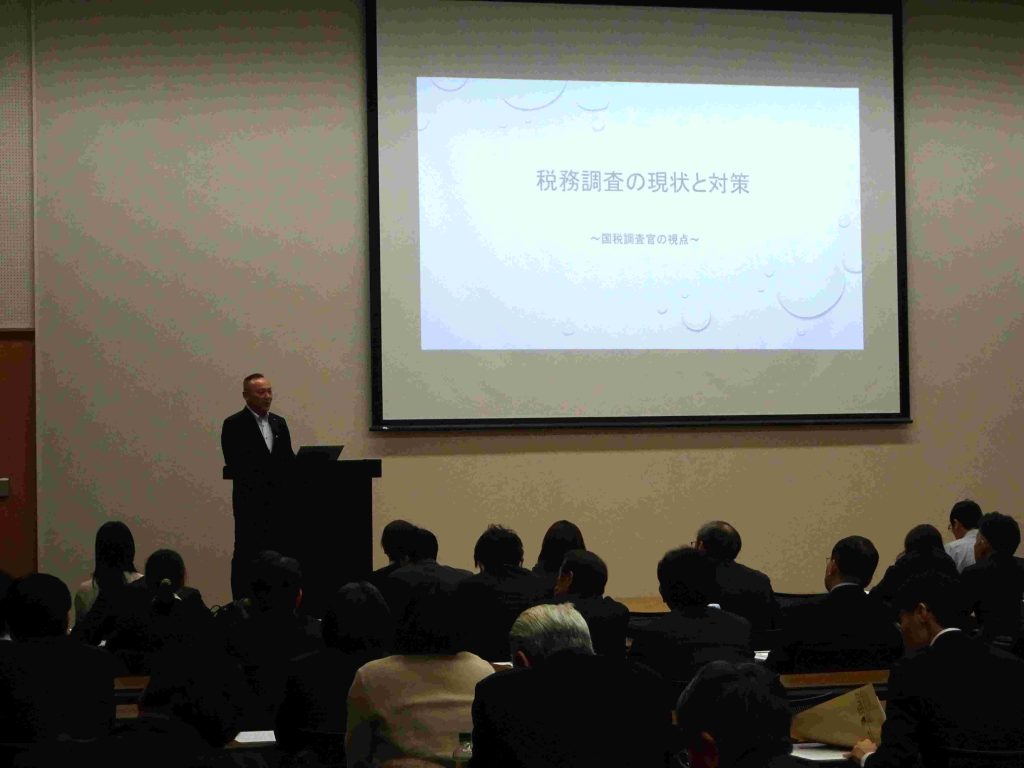 前半では税務組織の調査部署の体系・概要についての説明、後半では講師の国税調査官の経験を踏まえ、調査を受ける際の心構えや各科目ごとに指摘されやすいポイント・節税と脱税の違いなどの説明があり、最後には講師から調査への理解と協力、適正な経理処理と正しい申告のお願いがあった。