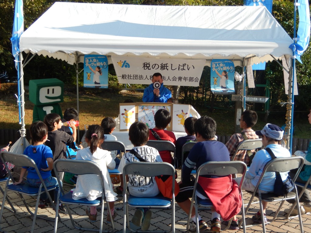 秩父法人会青年部会では平成26年10月18日(土)に秩父ミューズパークで開催された秩父商工会議所主催の「秩父はんじょう博」会場において租税教育事業として「税の紙芝居・税金クイズ」を開催しました。